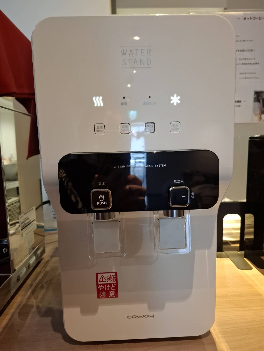 1階朝食会場と2階、3階のエレベーター前にウォータースタンド(浄水器)を設置しました。