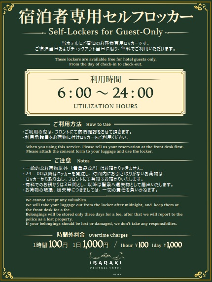 ・利用承諾書をお荷物に付けロッカーをご利用ください。